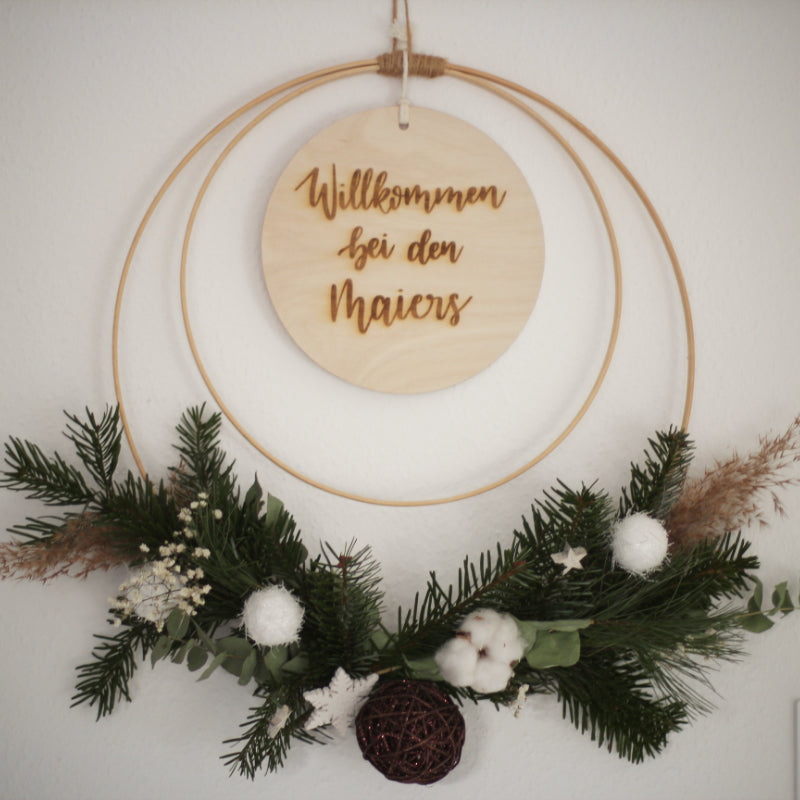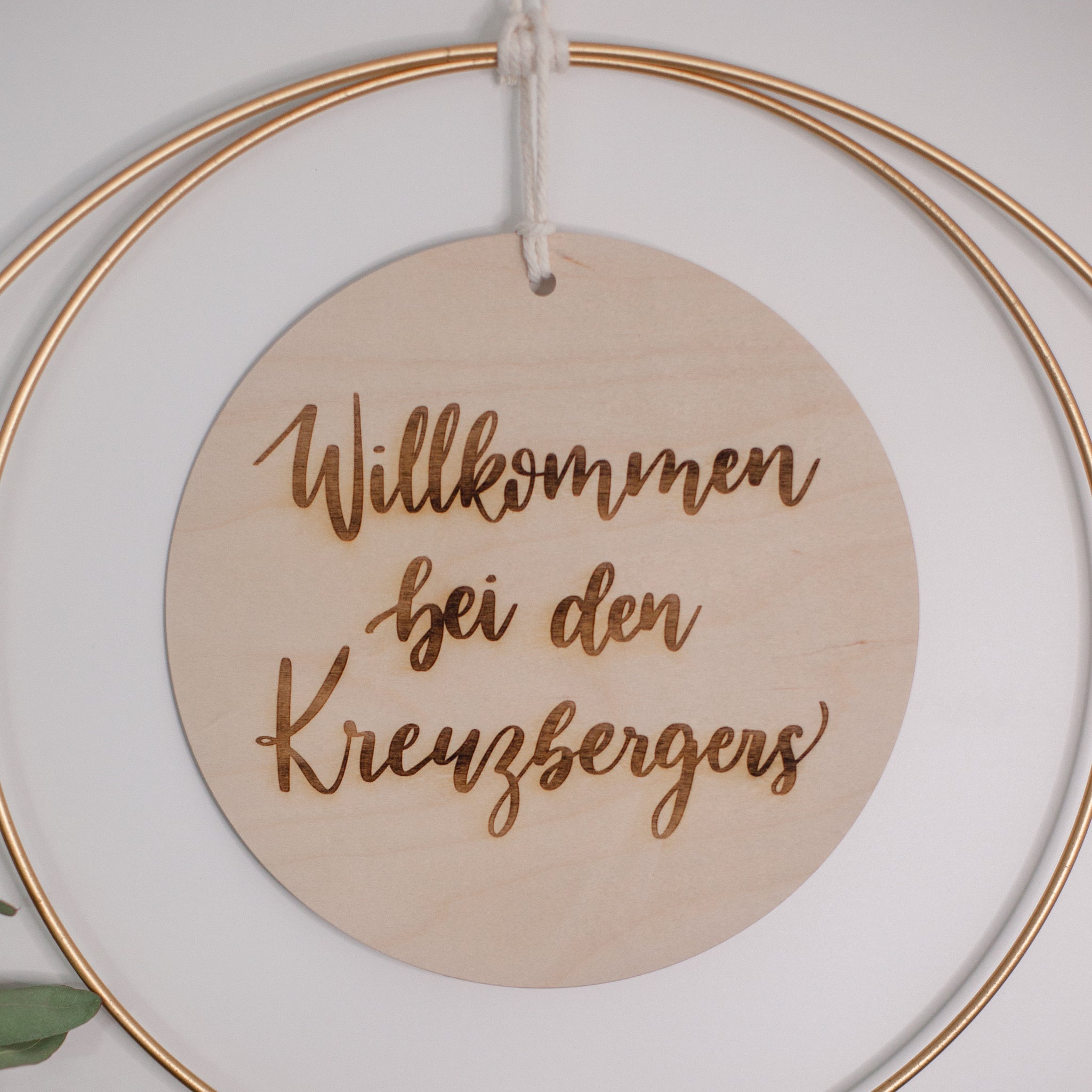 Mit dem Holzschild "herzlich Willkommen bei den... "Wunschname" " gibst du dem Eingangsbereich zuhause einen schönen Charakter und dieses Produkt eignet sich auch toll zum Verschenken!