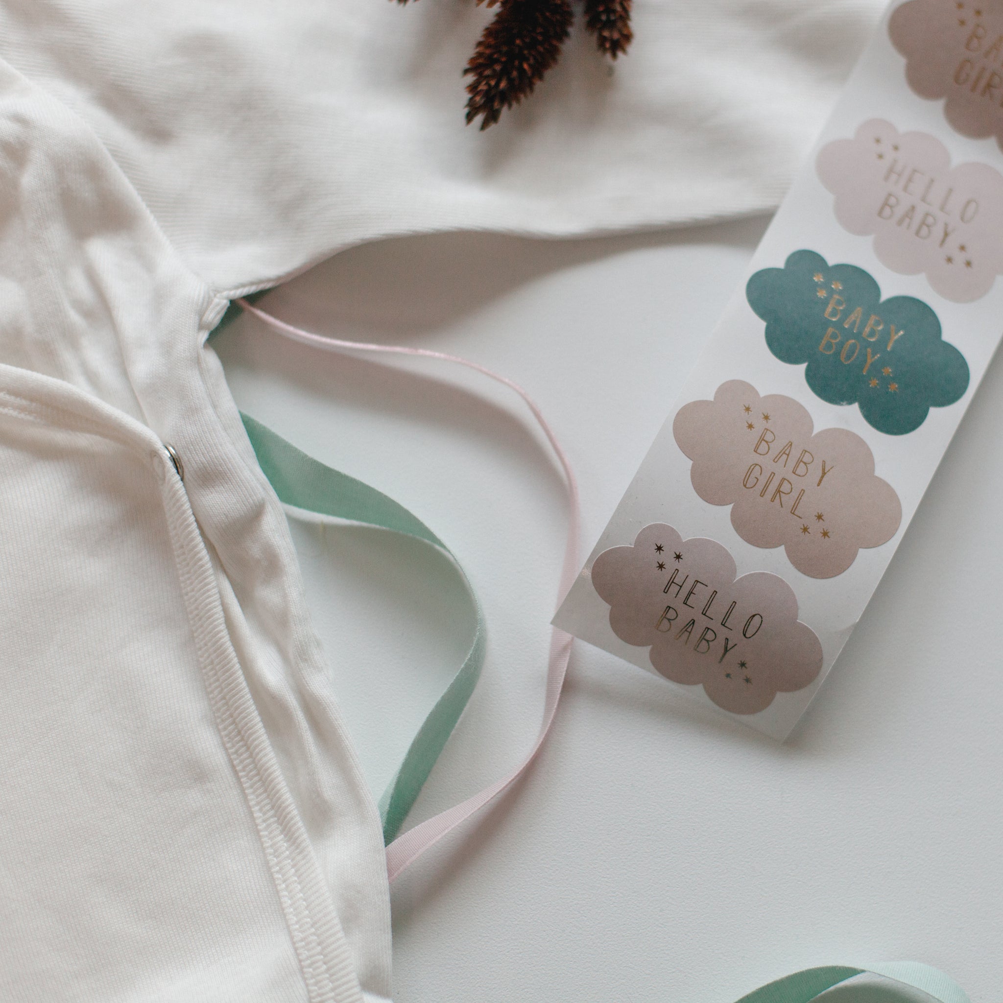 Mit diesem Baby-Sticker Set und den beiden Geschenkanhängern verschönerst du  dein Geschenk zur Geburt oder zum Geburtstag. Mit dem Golddruck sind die Sticker ganz besonders aus.